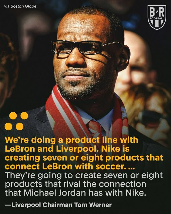 北京时间11月25日,据露天看台报道,英超利物浦队主席汤姆-沃纳透露,球队正在打造勒布朗-詹姆斯和利物浦的联盟产品生产线。