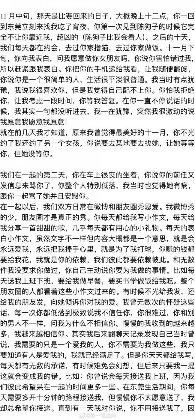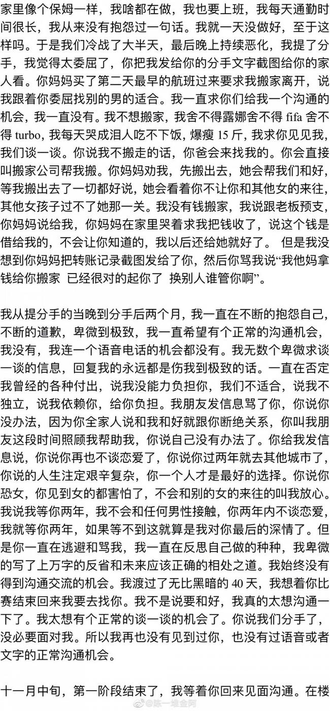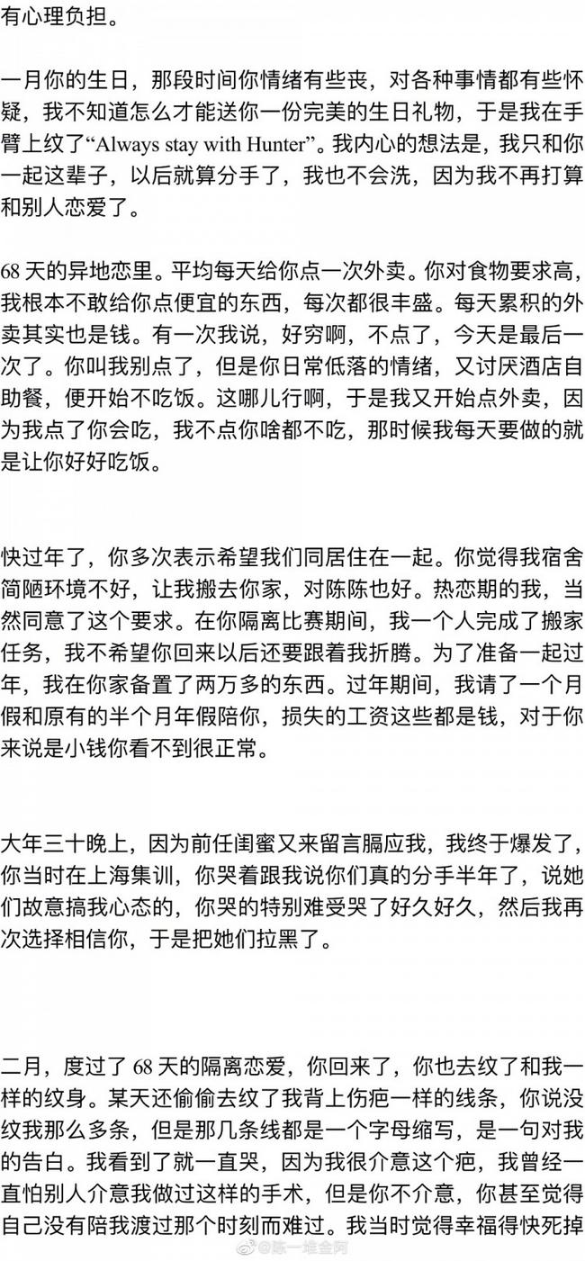 前女友发长文控诉贺希宁 多次在恋爱期间劈腿