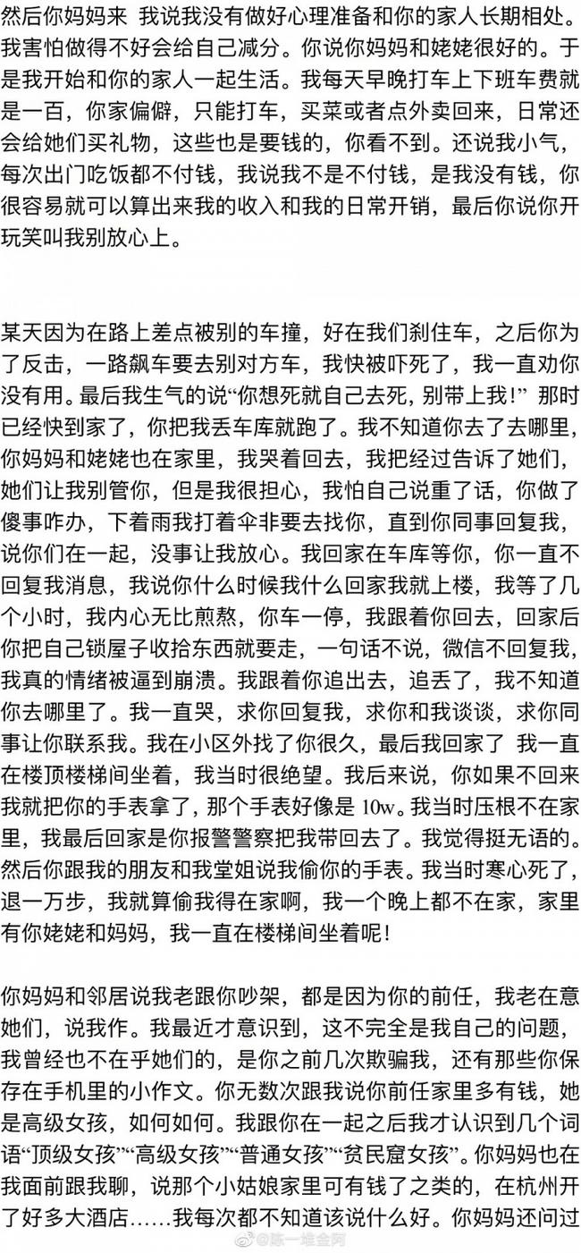 贺希宁前女友以《一场可笑的恋爱》为题,控诉了贺希宁包括在两人恋爱期间多次劈腿、要求她辞职与他同居、向身边的人诋毁她等等。