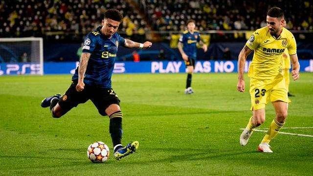 下半场比赛,桑乔抓住了若日尼奥的失误,帮助曼联首开比分: