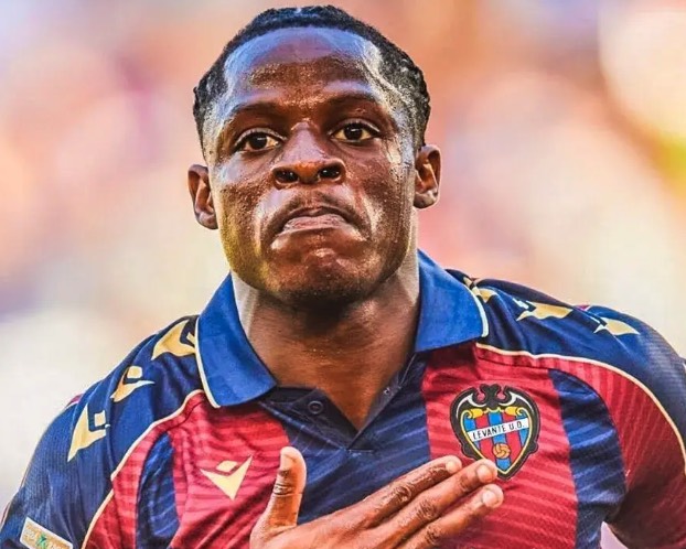 在中锋谢什科遭遇膝伤后,英媒传闻曼联可能在1月份冬季转会窗继续补强锋线。然而,这可能取决于谢什科的具体伤情,以及齐尔克泽是否留队。但报道披露,卡尔·埃塔·埃永(Karl Etta Eyong)是红魔考察的目标球员之一。刚满22岁的埃永效力于西甲的莱万特,本赛季14场比赛打入6球,并有3次助攻,其中西甲9场5球排名射手榜第六,因此与诸多豪门联系在一起,其中包括来自英超的曼联和阿森纳。这位喀麦隆国脚的价格不会太高,因为他的合同中规定,非西班牙球队只需3500万欧元即可激活违约金条款,直接将他签下。