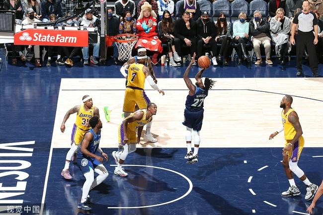 这是湖人本赛季第二次败给森林狼。“浓眉哥”在第三节受伤离场。
